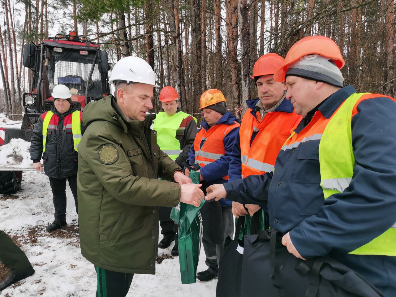 для того, чтобы лично поздравить с Днём защитников Отечества и Вооруженных сил Республики Беларусь работников отрасли, которые трудятся на разработке труднодоступных буреломных участков на Гомельщине.