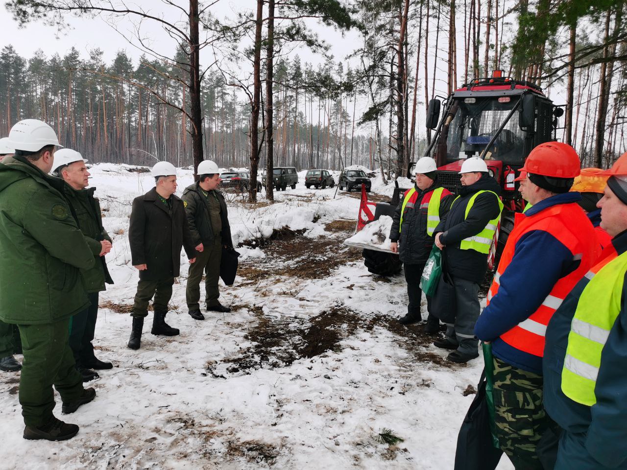 Сегодня, 23 февраля, лесосеки Жлобинского лесхоза посетили первый заместитель министра лесного хозяйства Андрей Карась и генеральный директор Гомельского государственного производственного лесохозяйственного объединения Игорь Дегтярик. Цель визита – лично поблагодарить лесоводов за самоотверженный труд вдали от дома, а также поздравить их с Днём защитников Отечества и Вооружённых Сил Республики Беларусь.