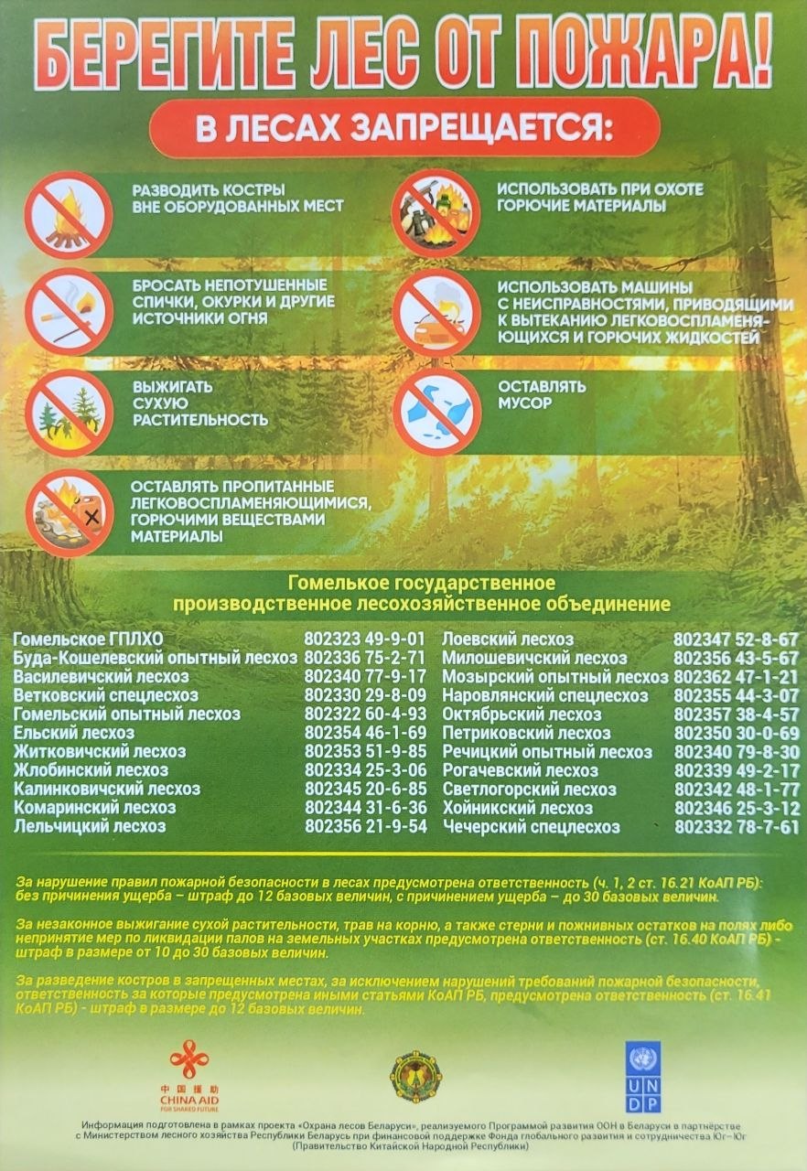 Если вы заметили задымление или признаки возгорания в лесу, просим незамедлительно сообщить об этом дежурному по пожарам Жлобинского лесхоза по телефону